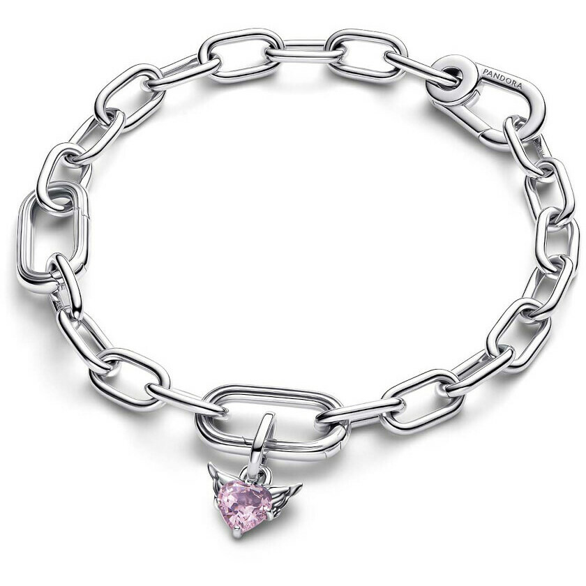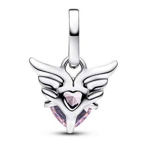 Pandora Mini Winged Heart Pink Pendant Charm in Silver .