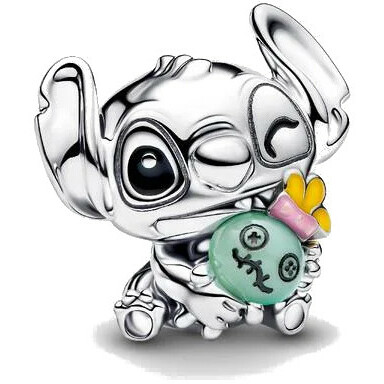 Celebrate love and friendship with the Disney Stitch charm from Pandora. Crafted from sterling silver, Stitch cuddles Scrump, his friend Lilo's favorite doll. Scrump comes to life in green Murano glass with touches of colorful enamel.The reference is 794554C01 .
