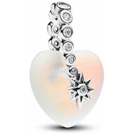 An iridescent moonstone glass heart meets a shooting star. The sterling silver charm with clear cubic zirconia symbolizes dreams, hopes, and infinite possibilities. Wear it alone or layered with other meaningful pieces.The reference is 79143C01 .