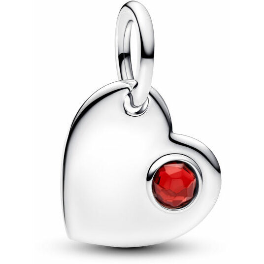 Pandora Heart Pendant Charm with Dark Red January Stone in silver.