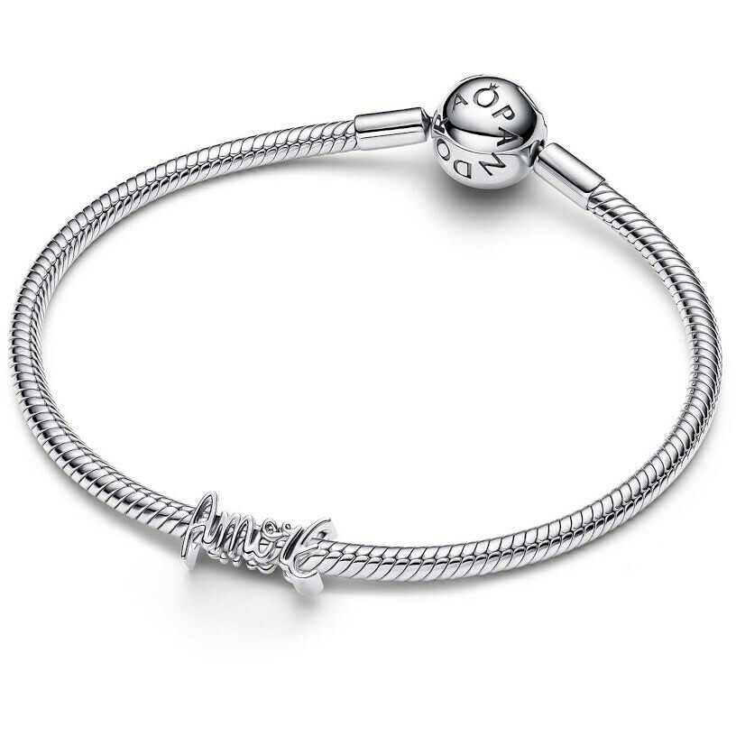 Celebrate love with this eye-catching Pandora charm. Crafted from sterling silver, it features the handwritten word "AmorE" in openwork, a playful expression of love.The reference is 794434C00 .
