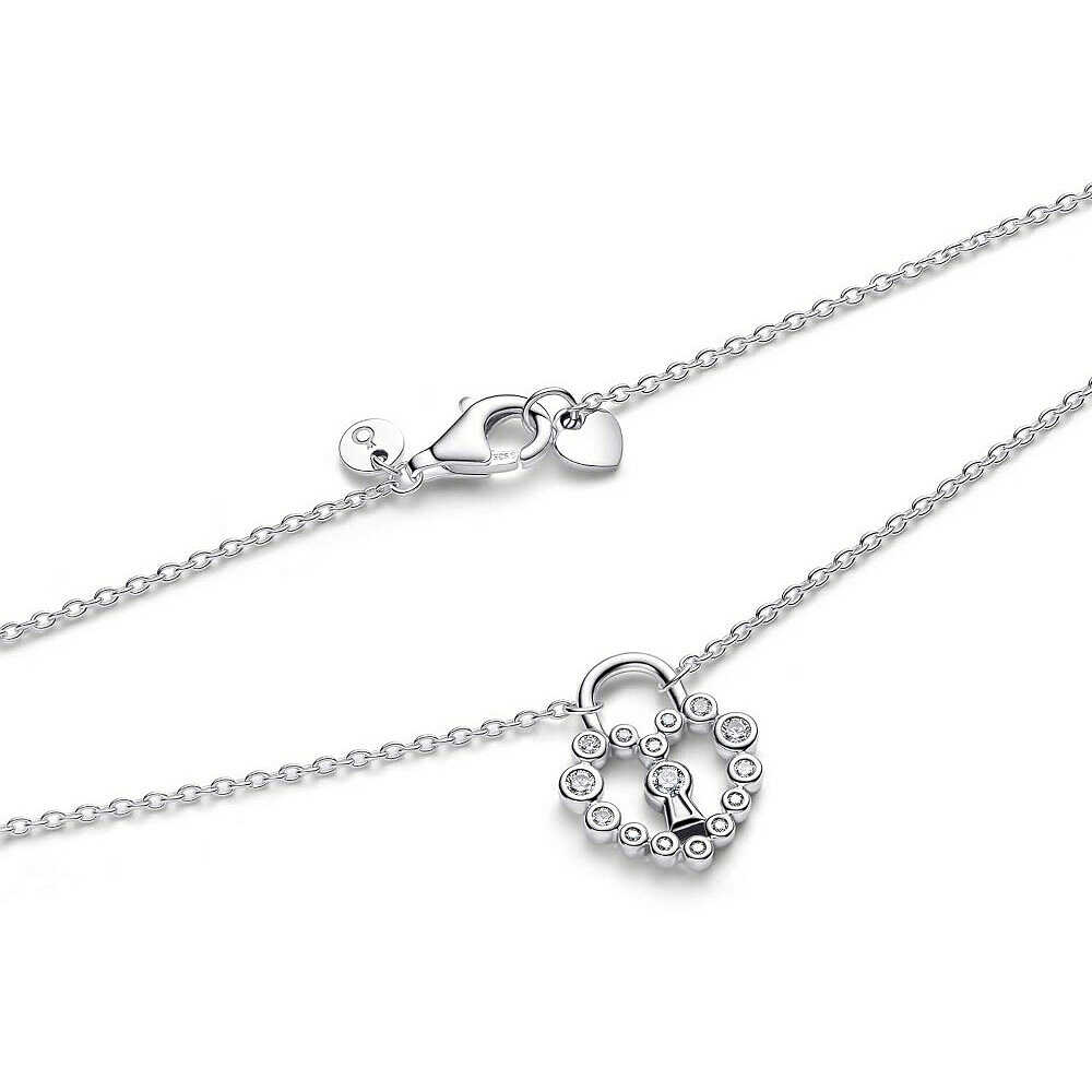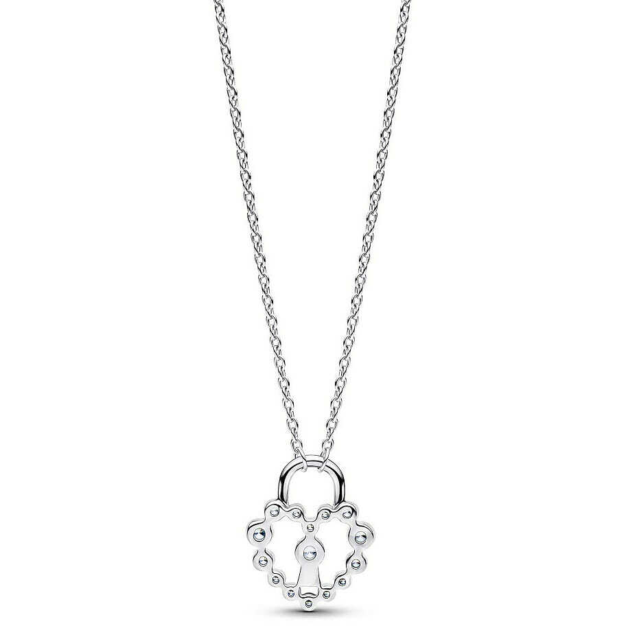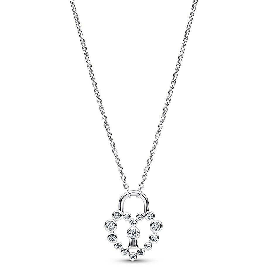 Celebrate the one you love. This Pandora necklace sparkles with small, luminous stones that create a heart-shaped lock, symbolizing love and unity.The reference is 394416C01-50 .
