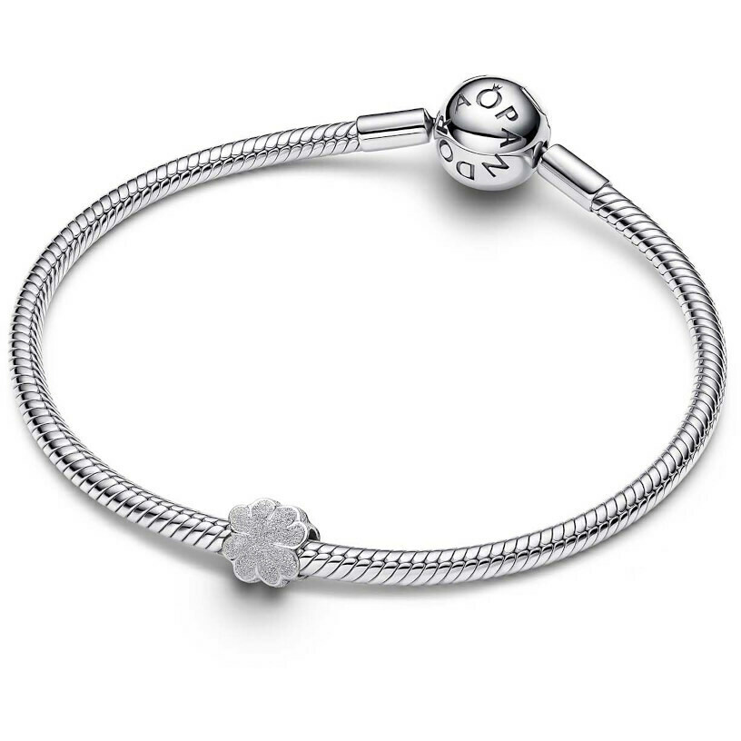 Pandora Mini Charm Four-Leaf Clover with Diamond Effect in Silver.