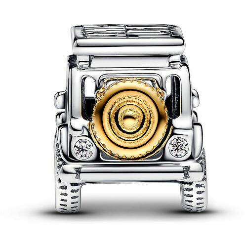 This sterling silver charm features a car with lots of details, including wing mirrors, wheels and realistic scratches. A 14k gold-plated spare tire and front grille add contrast, while dazzling clear cubic zirconia stones act as the headlights and rear.