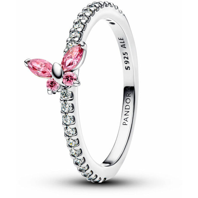Pandora Sparkling Pink Butterfly Ring in Silver.