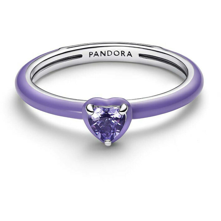 Express your love for yourself with this Pandora silver ring decorated with purple enamel and embellished with a man-made purple heart-shaped crystal at the center. Perfect for a romantic look.The reference is 193088C04 .