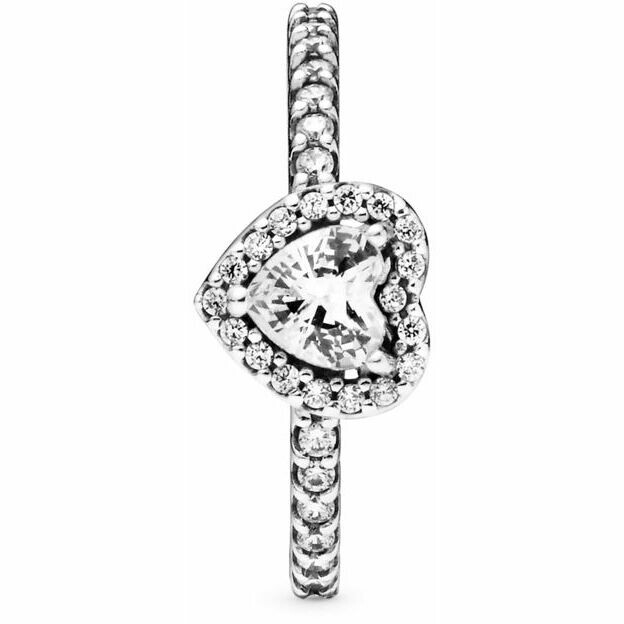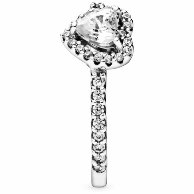 A heart-shaped crystal is set in the centre of the ring, highlighted by sparkling pavé in the setting frame and along the front of the band.