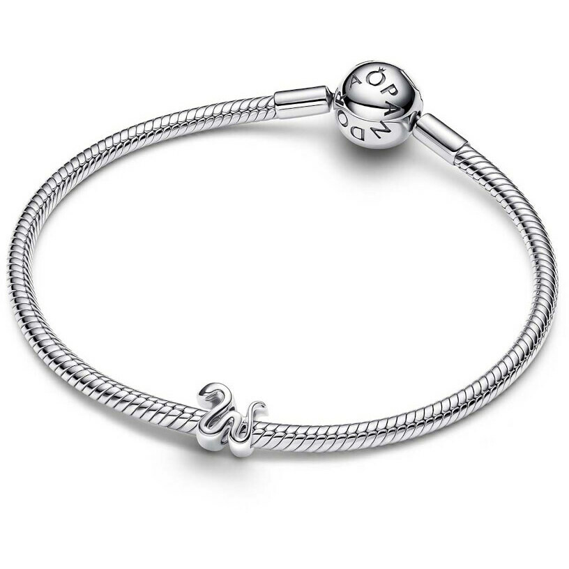 Big meanings in a mini format. This Pandora Mini Snake Charm in polished silver adds a touch of mystery to your composition. Elegant, symbolic, and powerful, just like you.The reference is 794520C00 .