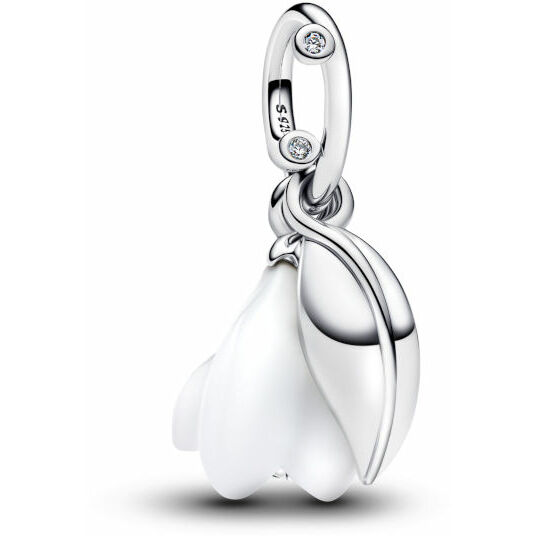 Pandora Charm Pendant Snowdrop Flower Murano Glass in silver.