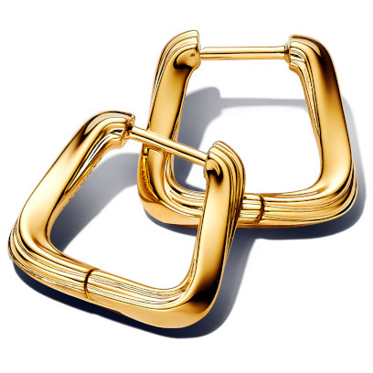 Pandora Square Hoop Earrings Wrap Line and 14K gold plating.