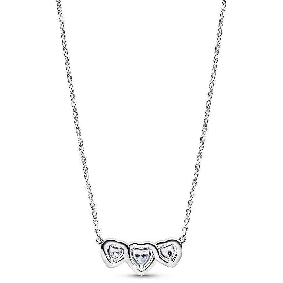 For the past, present, and future. This 925 sterling silver necklace is adorned with three heart-shaped stones connected by a pavé of sparkling points. A luminous symbol of love in all its phases.The reference is 394412C01 .