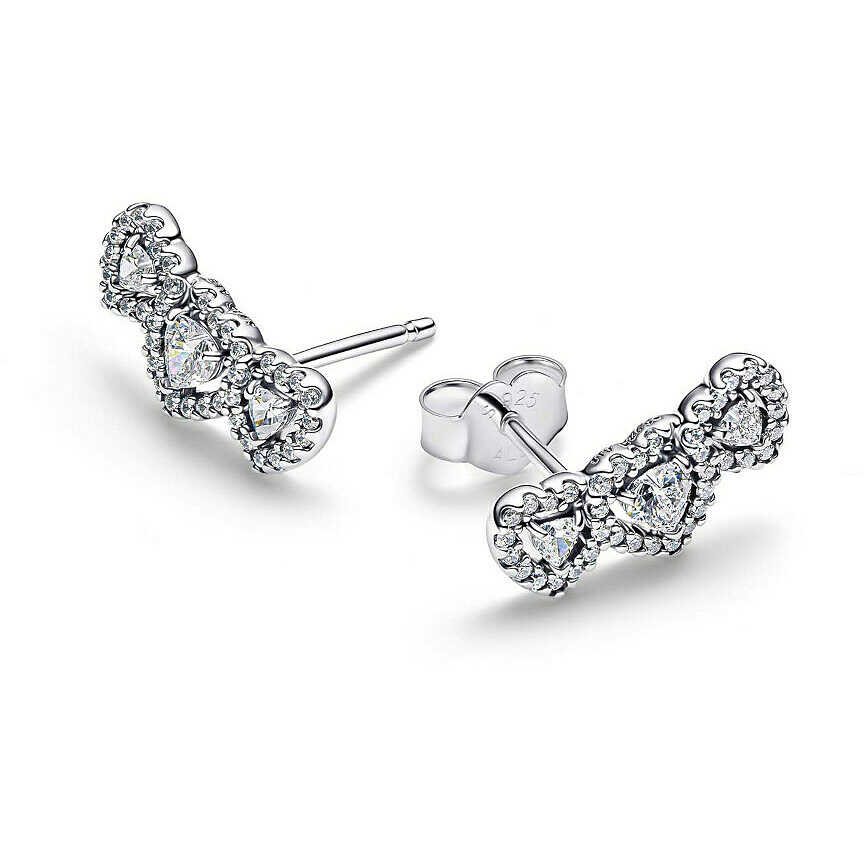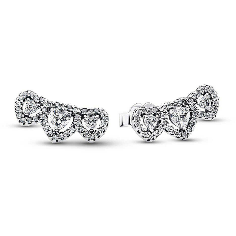 For the past, present, and future. These sterling silver stud earrings are adorned with three heart-shaped stones connected by a pavé of sparkling points. A luminous symbol of love in all its phases.The reference is 294411C01 .