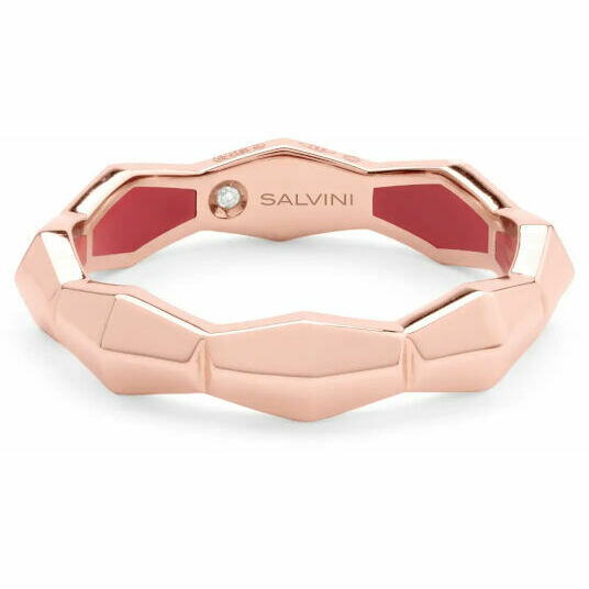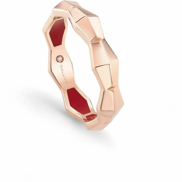 The Salvini jewelery ring is made of rose gold with a thickness of 4.3 mm, inside there is a 0.003 ct diamond and red ceramic.