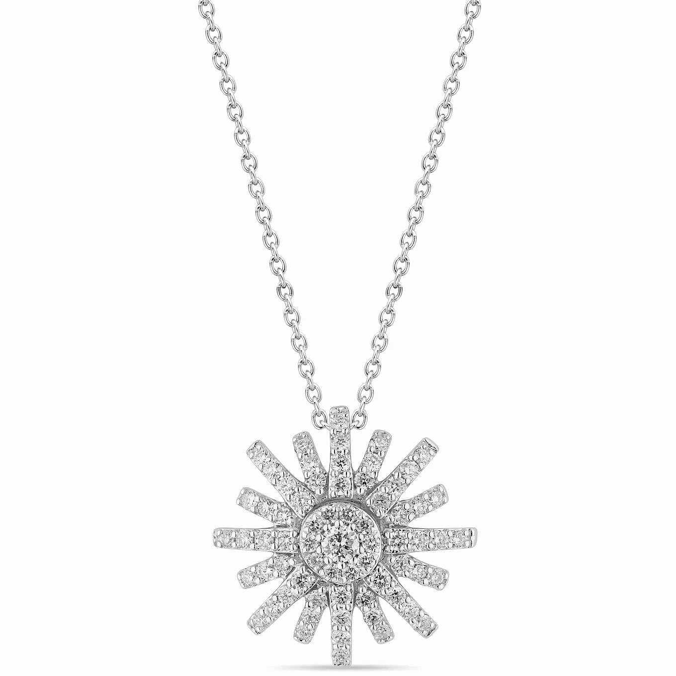 Salvini Sole necklace crafted from white gold with a sun-shaped pendant set with pavé diamonds, totaling 0.34 ct. and measuring 42 cm in length with a lobster clasp.