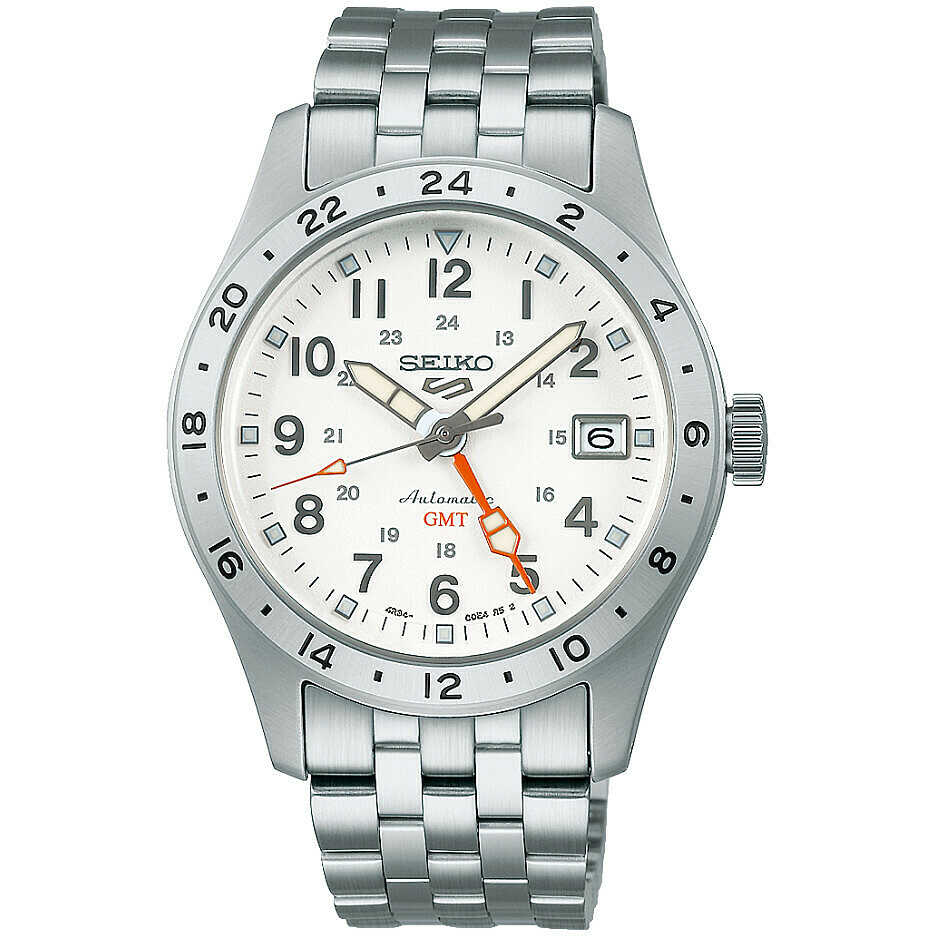 The automatic GMT movement is the Seiko in-house caliber 4R36 with 41 hours of power reserve.