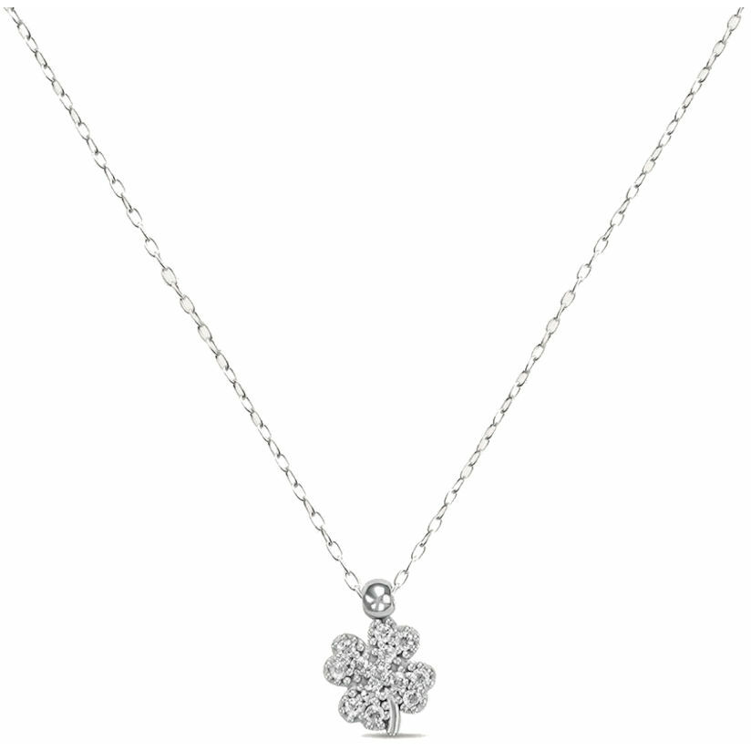 Stroili necklace in 9kt white gold with four-leaf clover pendant in white zirconia pavé.