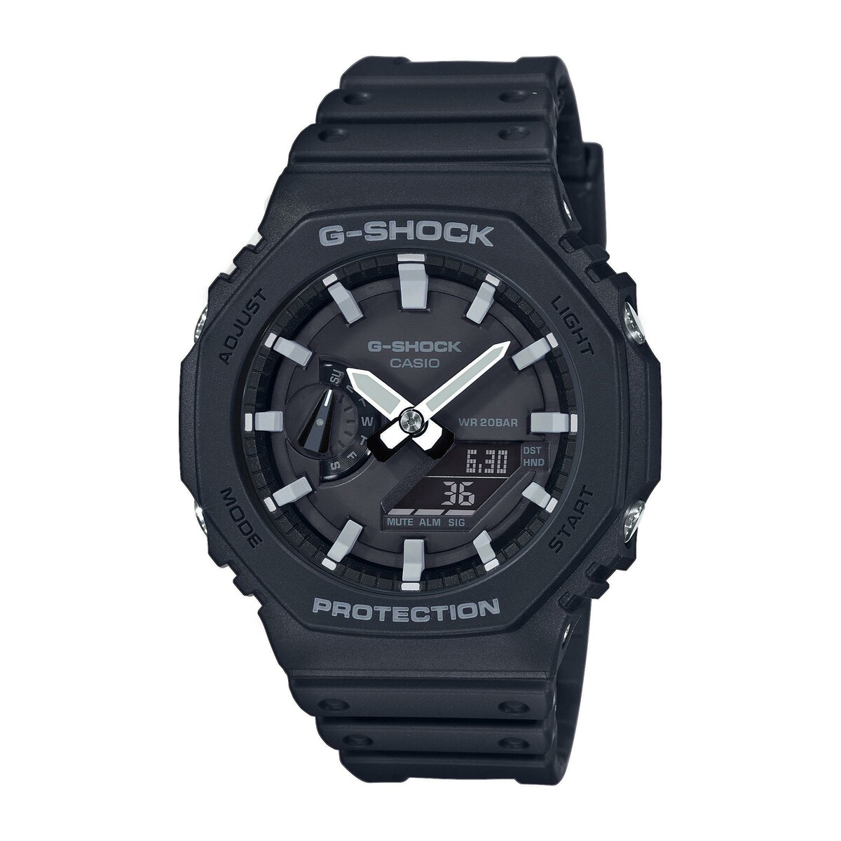 Orologio con cassa in resina nera di forma ottagonale con un diametro 45,4 mm, display analogico-digitale, e cinturino in in resina di colore nero. Il vetro è minerale e la resistenza all'acqua e' di 20atm.