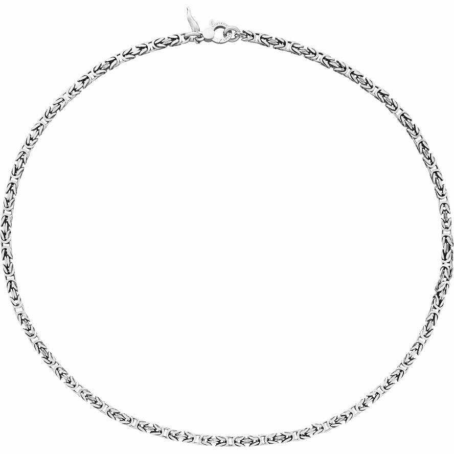Collana Raspini da uomo realizzata in argento con maglia bizantina quadra piccola con una lunghezza di 50 cm e chiusura a moschettone.