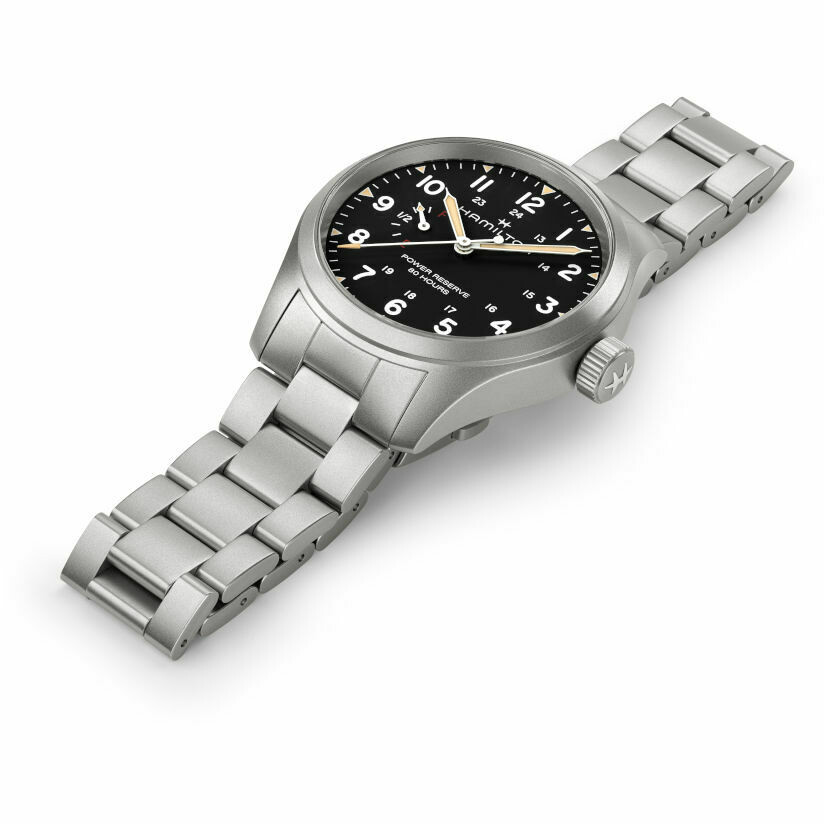 Orologio automatico da uomo con riserva di carica della collezione Khaki Field di Hamilton.