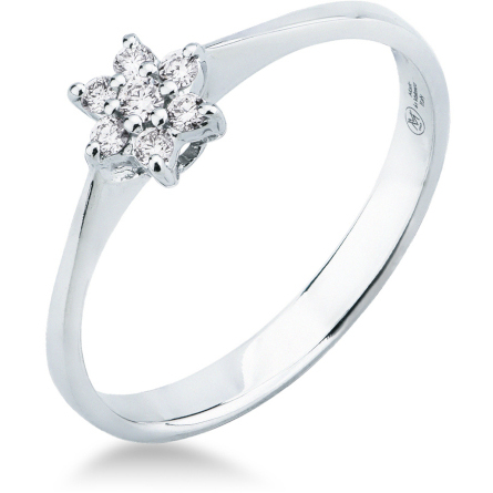 Anello Visconti da donna realizzato in oro bianco con diamanti e castone centrale a forma di fiore con una caratura complessiva i 0,10 ct.