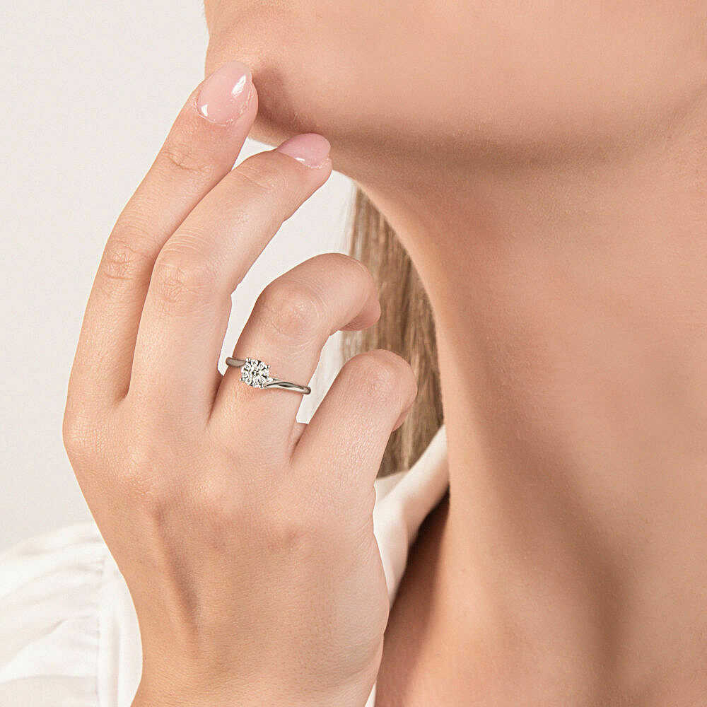 Anello solitario da donna in oro bianco e diamanti della collezione di Mirco Visconti.