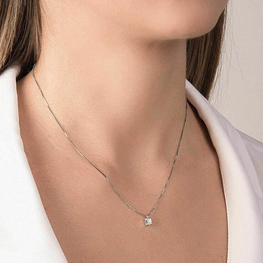 Collana Visconti punto luce in oro bianco con diamante da 0,18 ct. colore G purezza VS.