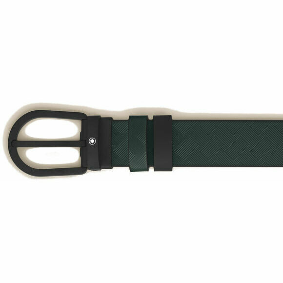 Cintura Montblanc reversibile in Pelle Verde/Nera con stampa Extreme 3.0. La Fibbia è a ferro di cavallo nera.