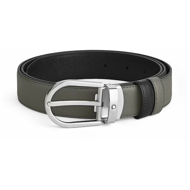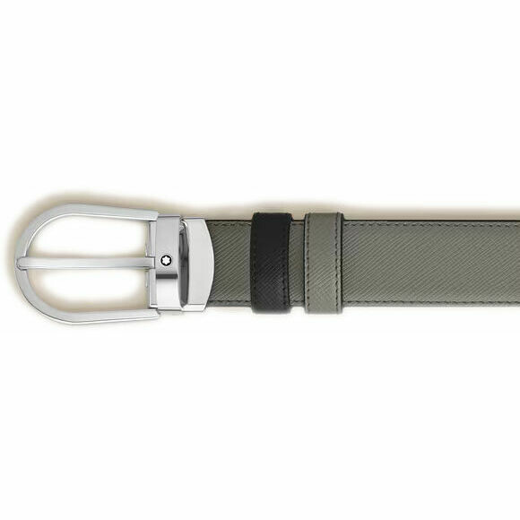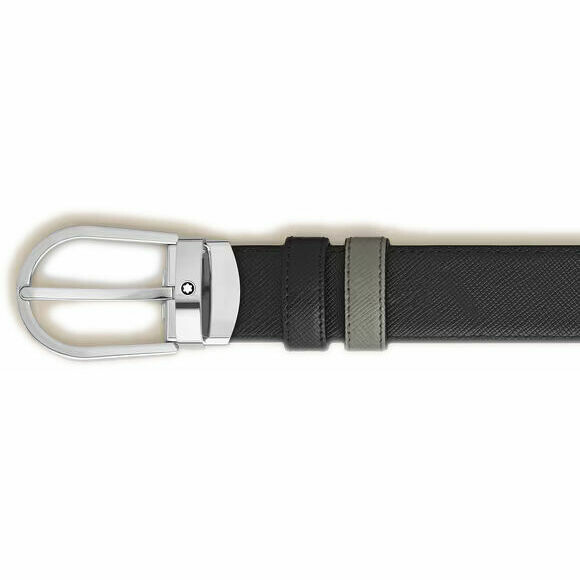 Cintura Montblanc reversibile in Pelle Grigio/Nera in pelle saffiano La Fibbia è a ferro di cavallo.