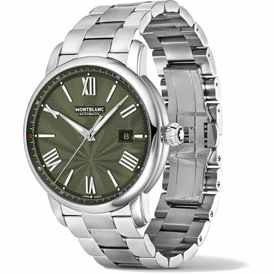 Orologio Montblanc da uomo realizzato con cassa in acciaio da 43 mm e cinturino in acciaio con finiture satinate e lucide.