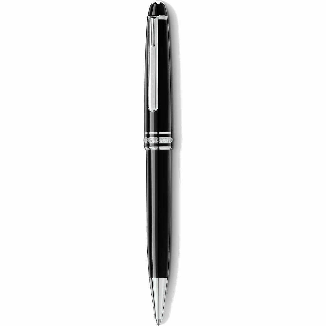 Il corpo e il cappuccio sono in pregiata resina nera con emblema Montblanc bianco intarsiato. I tre anelli finitura platino con goffratura del marchio Montblanc e la clip finitura platino con numero di serie individuale mettono ulteriormente in risalto il design intramontabile di questa lussuosa penna a sfera.