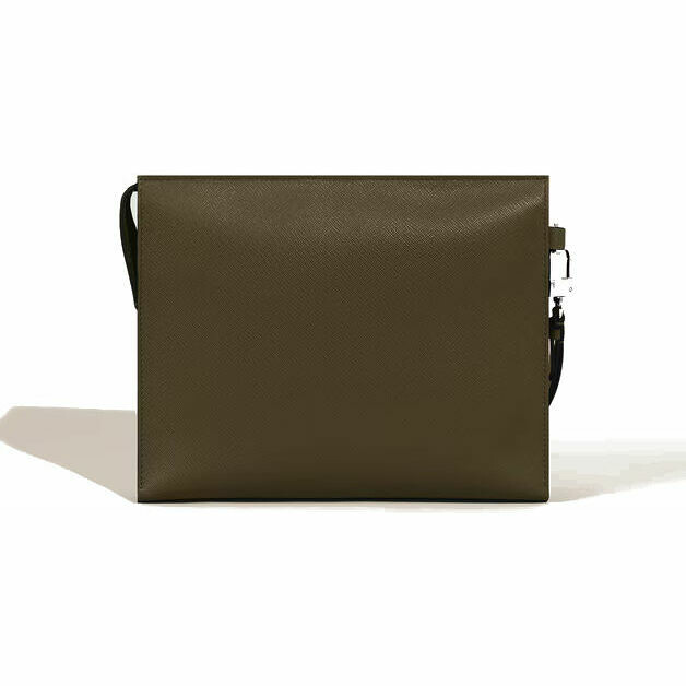 Pochette in pelle Khaki con chiusura a cernira della collezione Sartorial di Montblanc.