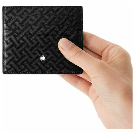 Questo porta carte di credito dal design compatto e funzionale è realizzato in morbida pelle bovina pieno fiore nera goffrata con motivo Extreme 3.0 può contenere sei carte di credito. Il porta carte di credito è completato dall’emblema Montblanc.