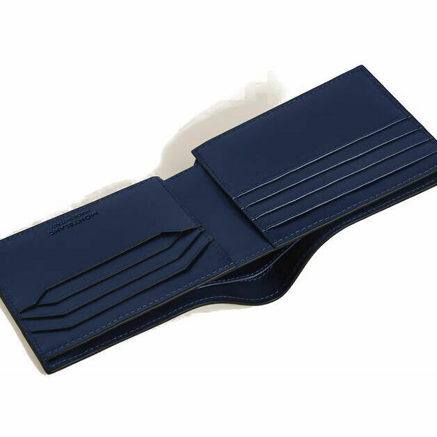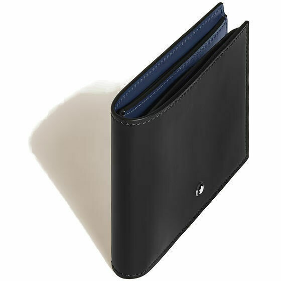 Portafoglio Montblanc sottile ed elegante realizzato in pelle liscia esterna di colore nero, all'interno un soprendente blu inchiostro. L'interno è organizzato con otto scomparti per carte di credito e due scomparti per banconote e due tasche aggiuntive perfette per le ricevute e gli appunti.