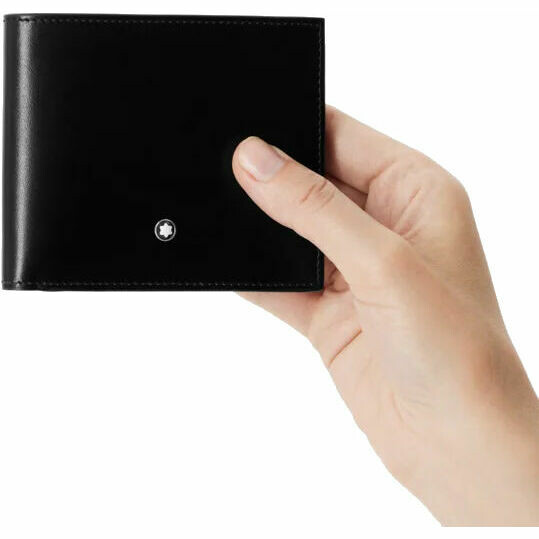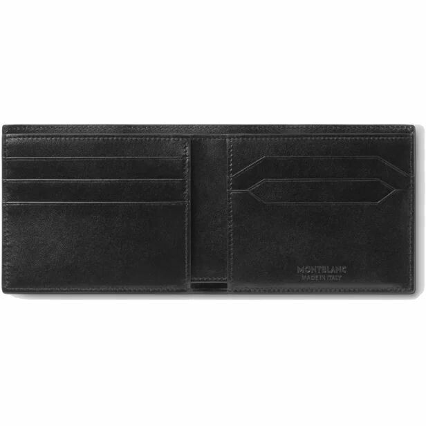 Portafogli Montblanc sottile ed elegante, realizzato in pelle nera e foderato in tessuto con 6 scomparti per carte di credito e due scomparti per banconote.