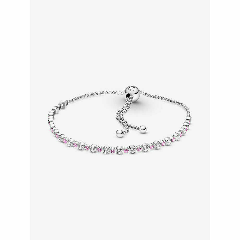Bracciale Pandora Tennis Rosa con Chiusura Regolabile in argento.