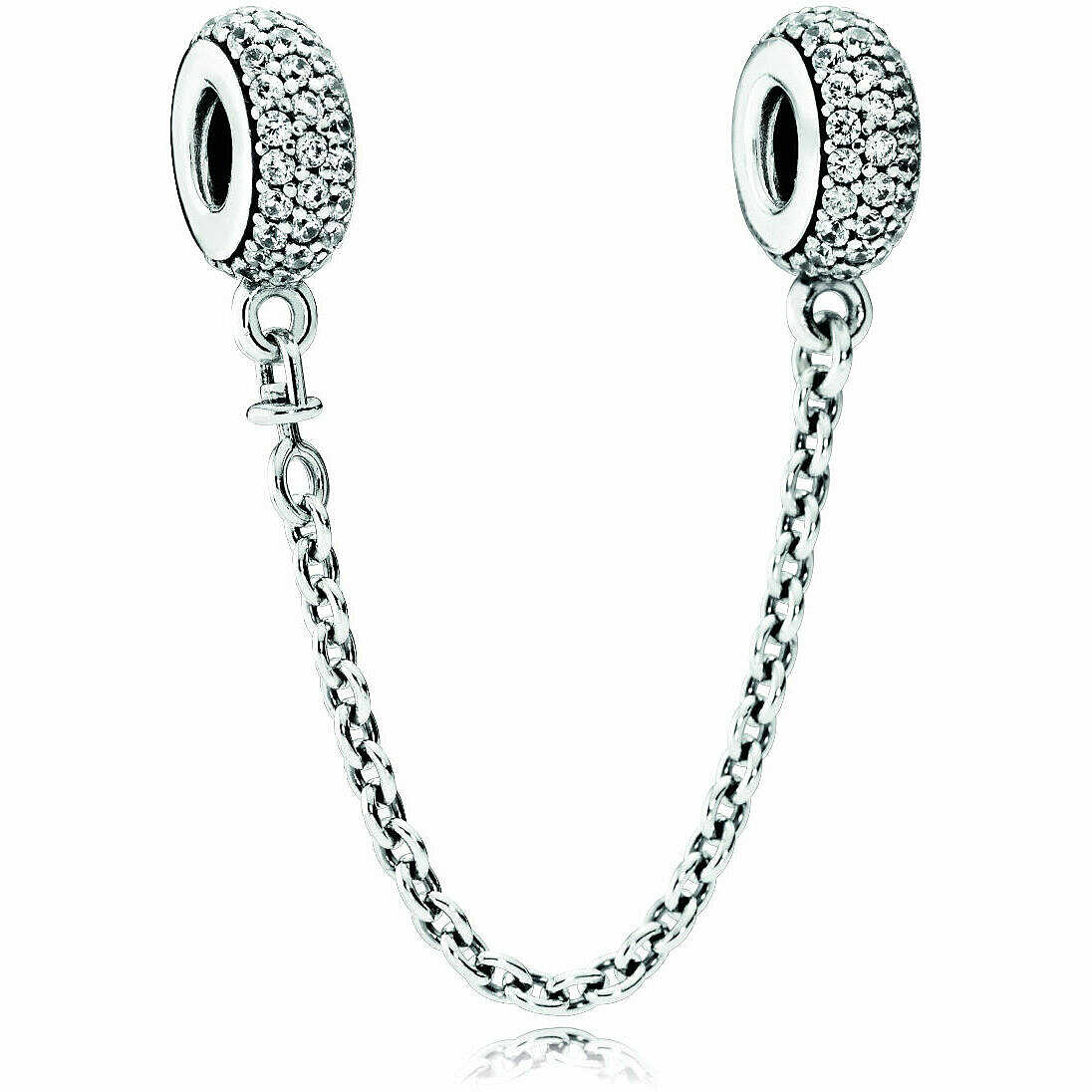 Catena di sicurezza reallizata in argento decorata da pietre di zirconia cubica per una finitura più scintillante, la catena di sicurezza è completata da una catena girevole che evita grovigli.