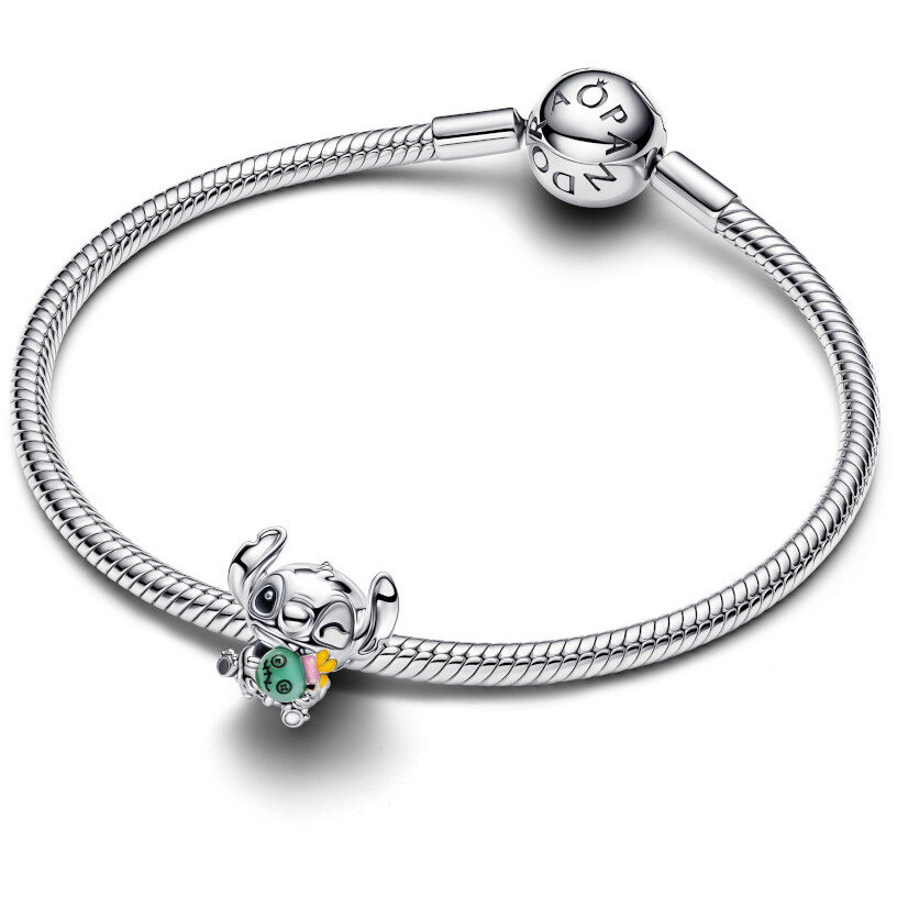 Celebra l'amore e l'amicizia con il charm Pandora Stitch di Disney. Realizzato in Argento Sterling 925, Stitch coccola Scrump, la bambola preferita della sua amica Lilo. Scrump prende vita grazie al vetro di Murano verde con tocchi di smalto colorato.