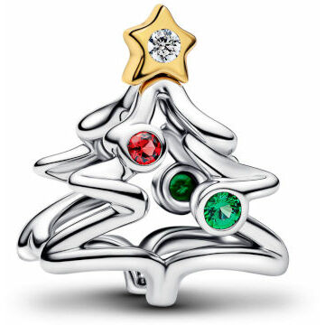 Un classico natalizio rivisitato. Il charm openwork Albero di Natale combina Argento Sterling 925 e finitura in oro con cristalli creati dall’uomo rossi e verdi e una stella. Ideale per ravvivare il tuo look natalizio.