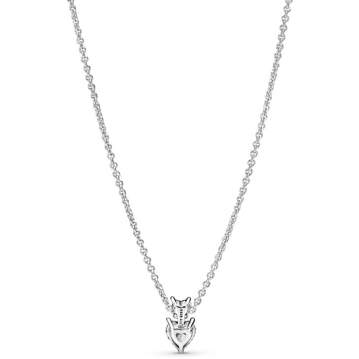 La collna ha una lunghezza di 45 cm regolabile a 41 con chiusura a moschettone, presenta 2 pietre incolore a forma di cuore di misure differenti.
