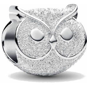 Mini Charm Pandora Gufo effetto diamantato in argento.
