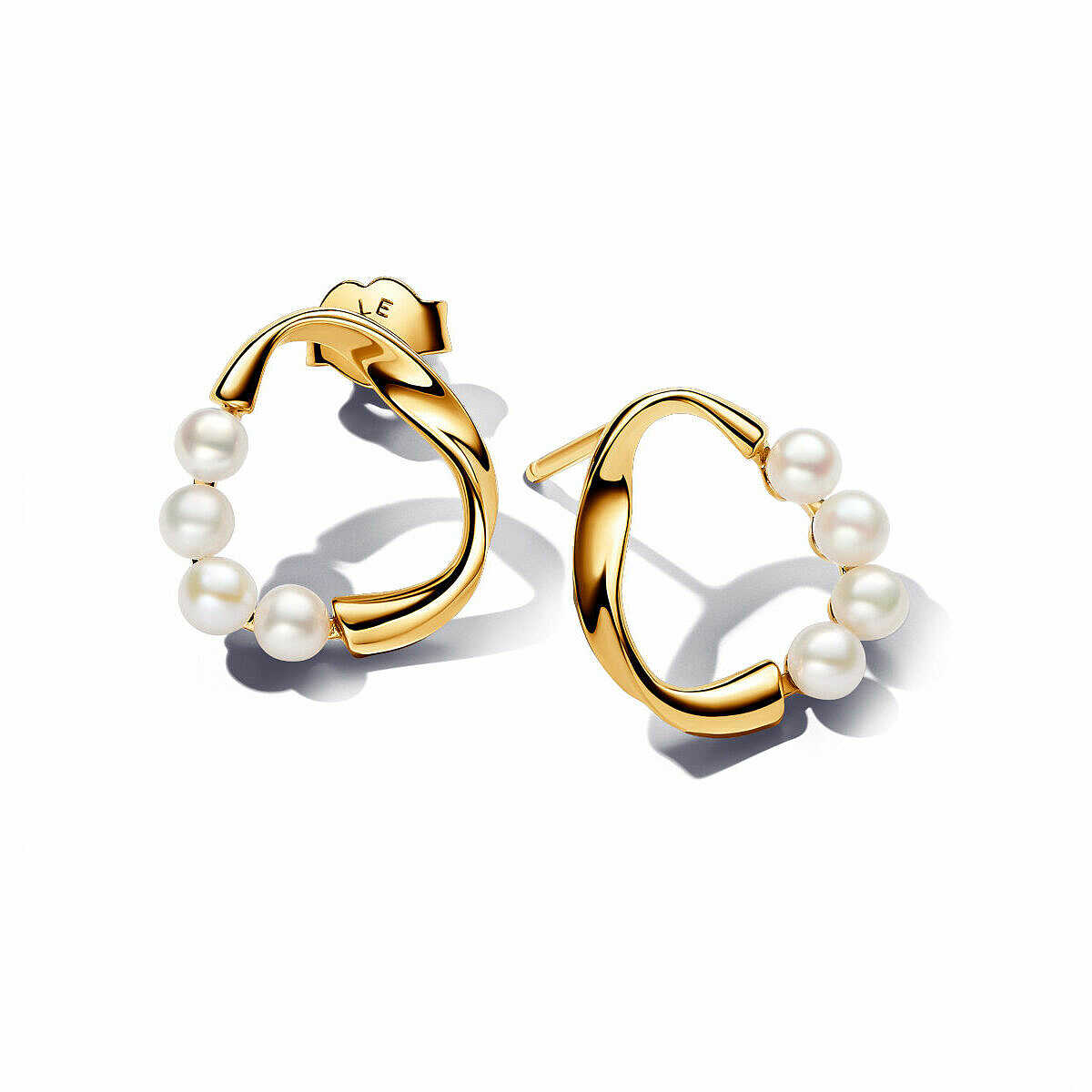 Gli Orecchini Pandora Linea Sinuosa Circolare con Perle d'Acqua Dolce Coltivate si ispirano alla bellezza delle forme sinuose della natura.