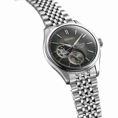 La cassa è in acciaio con un diametro di 39,45 mm e spessore di 12,70 mm. Il cinturino è in acciaio e il vetro zaffiro con trattamento antiriflesso.