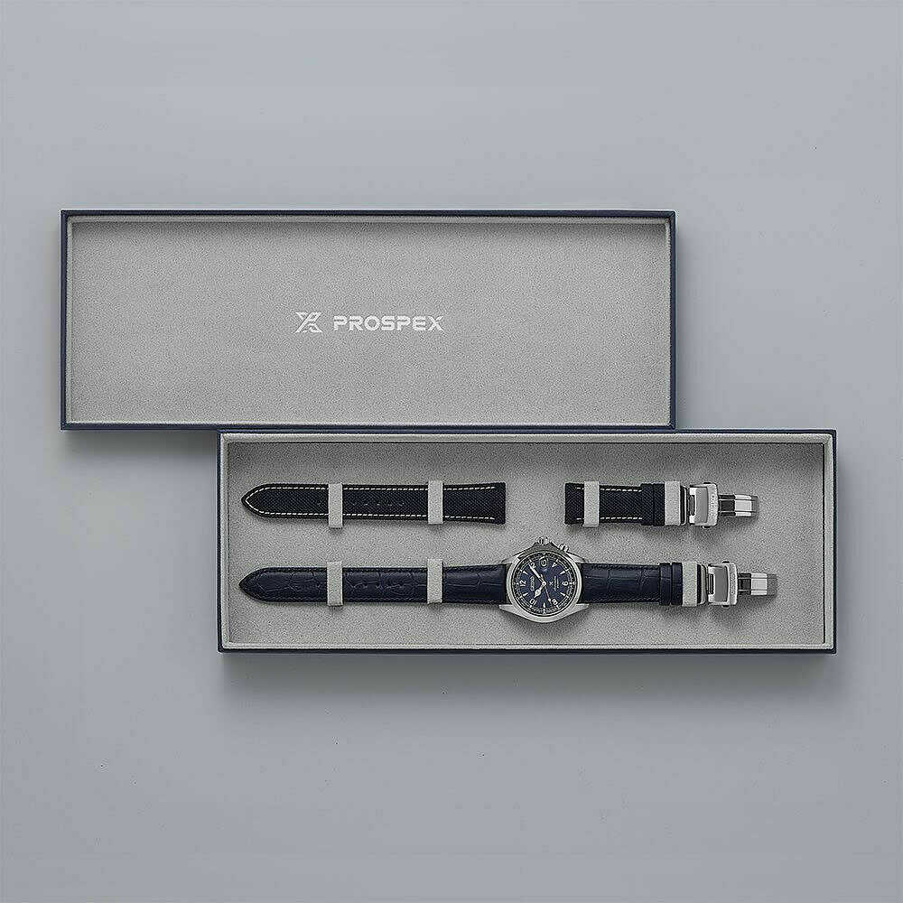 Questa inedita edizione rende omaggio al primo orologio sportivo Seiko del 1959, reinterpretato per gli esploratori moderni. Il tema cromatico si ispira al cielo notturno sopra il Monte Cervino.Il quadrante blu intenso con una sottile struttura verticale ricorda le notti limpide in montagna. Con due cinturini, uno in pelle di vitello blu navy e l'altro in nylon, questo Alpinist si adatta a tutti gli stili.