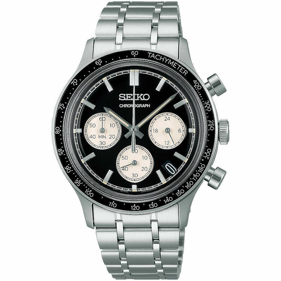 Questo orologio al quarzo della collezione Seiko SPORT offre una serie di funzioni. Il quadrante nero presenta tre contatori cronografici ed è circondato da una lunetta tachimetrica. Realizzato interamente in acciaio inossidabile con un diametro di 38,7 mm, questo modello è anche molto robusto grazie al vetro Hardlex, al fondello avvitato e all'impermeabilità fino a 100 metri.