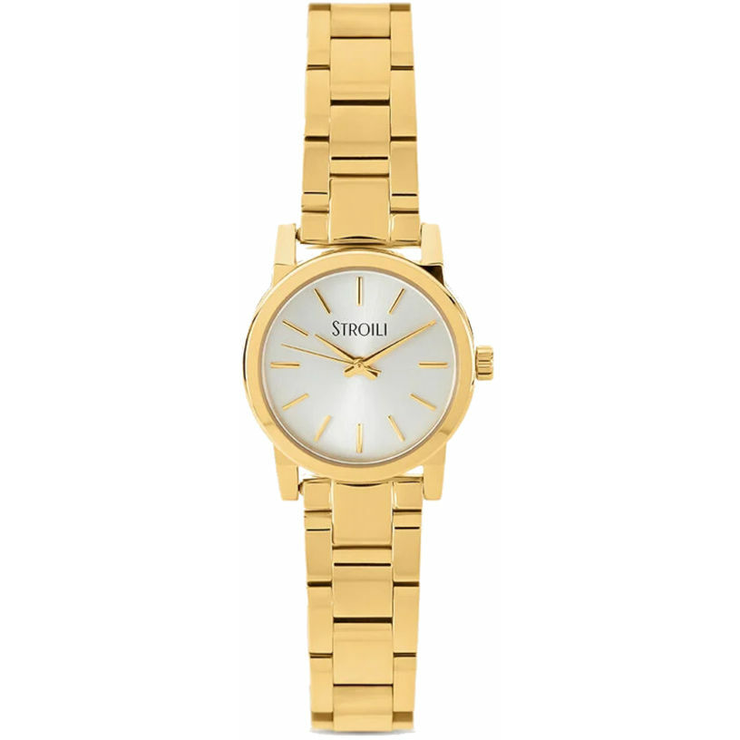 Orologio Stroili Bruxelles da donna con cassa dorata da 26 mm e uno spessore di 6,6 mm. Quadrante bianco con indici e lancette dorate. L'impermeabilità è garantita a 5 BAR.